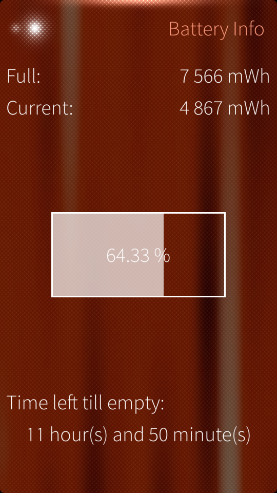 This was the first application I wrote. I was wondering how power hungry are various applications. On Android I used to have CPU usage monitor and I know that surprisingly many applications take advantage of CPU to the full extend which affects a battery life. Since I was writing the application I decided not to go for CPU usage but directly for what I was interested in – battery usage. First version was really simple, it just showed two numbers – current consumption and average (over ten seconds) one. But that already helped me to find out, that if you want to drain your battery fast, use Angry Birds 🙂